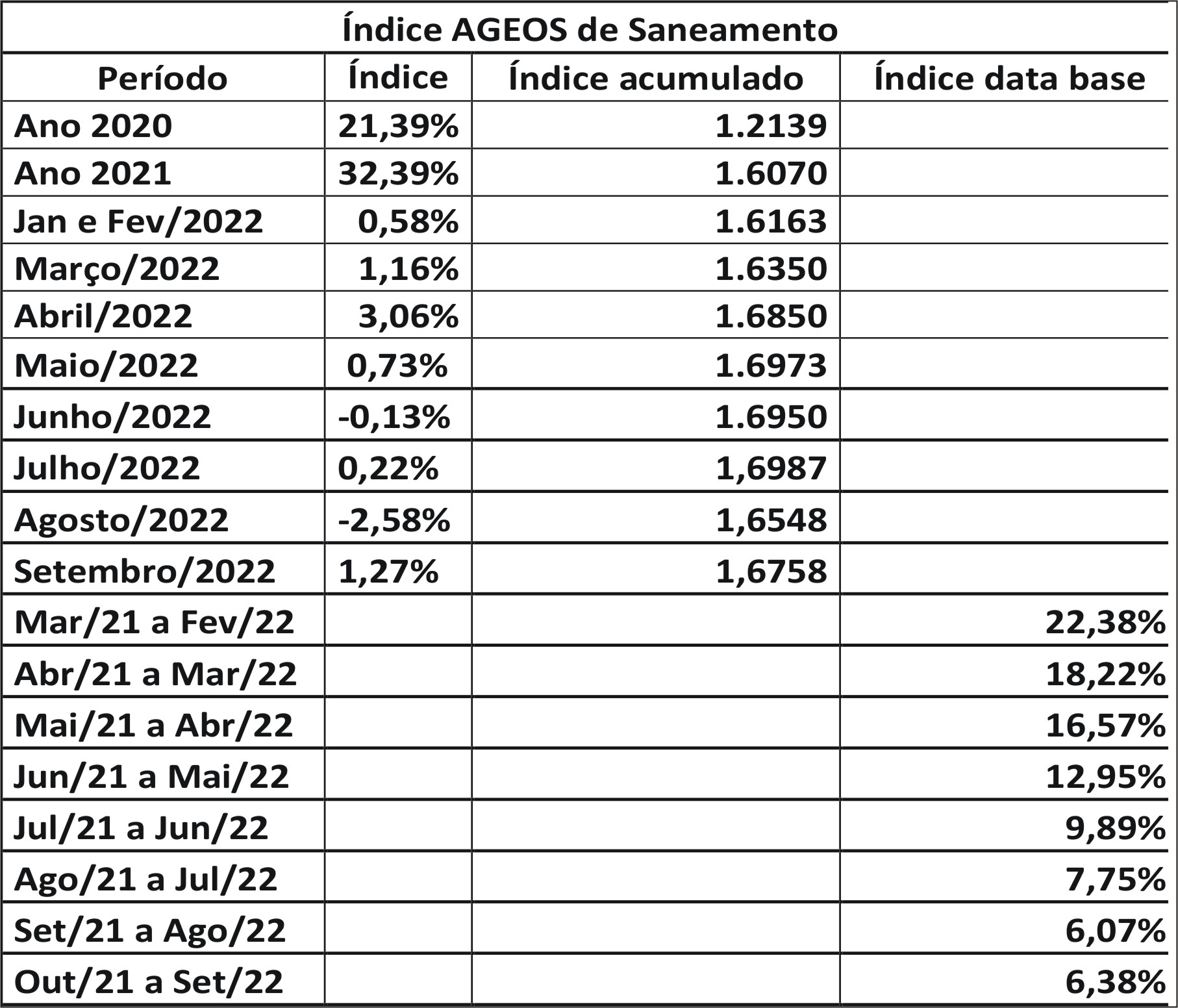 Atualizamos até Setembro de 2022 a planilha do IAS – Índice AGEOS de Saneamento. Estudo criado com o intuito de informar o mercado do Saneamento Básico do Rio Grande do Sul, mais especificamente o de Água e Esgotos sobre a variação dos custos dos principais insumos utilizados na execução das obras.